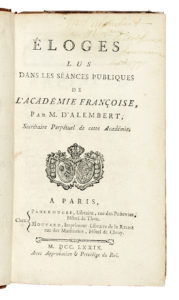 Alembert Jean Le Rond (d'), Eloges lus dans les séances publiques de l'Académie françoise... A Paris: chez Panckoucke; Moutard, 1779.