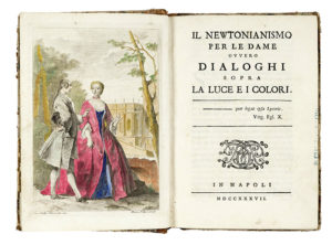 Algarotti Francesco, Il Newtonianismo per le dame ovvero dialoghi sopra la luce e i colori. In Napoli [i.e. Venezia]: s.e., 1737.