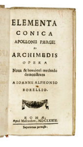 Apollonius Pergaeus, Archimedes, Borelli Giovanni Alfonso, Elementa conica... Romae: apud Mascardum, 1679.