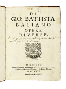Baliani Giovanni Battista, Opere diverse. In Genova: per Pietro Giovanni Calenzani, 1666.