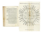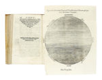 In-8° (mm 173x109). Pagine: [136], 349, [33] + [3] tavole calcografiche ripiegate. Numerose belle illustrazioni e diagrammi xilografici nel testo. Assente &8 bianca, timbro non leggibile al frontespizio, occasionali fioriture pallida, qualche macchietta e strappetto senza perdita di testo, prima tavola anticamente tagliata e rinforzata con integrazione a penna, pagina 62 con xilografia incollata al posto di altra figura, pagina 83 con altre 2 pecette "Zenith" e "Nadir", ma nel complesso attraente copia genuina nella sua pergamena flessibile coeva, dorso posteriormente rafforzato in carta con tassello cartaceo manoscritto. Lunga postilla presumibilmente coeva, a carattere astronomico, al recto della sguardia volante. (1) Prima edizione di questa opera basata sul De sphaera mundi del Sacrobosco, di cui Barozzi notò oltre ottanta errori. Affronta temi di cosmologia e geografia matematica, riflettendo il dibattito tardo-rinascimentale sull'ordine dell'universo, e contiene capitoli dedicati a geometria, geografia fisica, meteorologia, astronomia e astrologia. Riccardi I, 84-85. Cantamessa, Biblioteastrology.com, n. 618: "L'opera tratta in prevalenza di aritmetica, geometria e cosmografia. Tratta di astrologia nei Libri Secondo e Terzo della Cosmographia in termini generali e sotto il profilo astronomico. L'astrologia è comunque qui considerata una scienza derivata dall'astronomia, ma dotata di minore dignità."