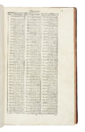 In- folio (mm 325x203) Pagine: [8], 88; [300]. Incollato su una carta bianca è stato aggiunto un ritratto del Principe di Galles a cui l'opera è dedicata, e che non appartiene al volume. Correzioni da carta di errata applicate al loro posto. Frontespizio un po' stanco, ampia gora pallida alla seconda carta e alla carta finale, 4H7 con angolo in basso strappato senza perdita di testo, altri minori strappetti e tracce del tempo ma nel complesso buona copia in vitellino inglese coevo con mandorla dorata al centro dei piatti riquadrati da filetti a secco, dorso a nervi (sbiadito e con piccole mancanze alla testa e al piede), cerniera anteriore spaccata ma piatto ben attaccato, qualche abrasione, tagli spruzzati di rosso. (1) Prima edizione delle tavole dei logaritmi di Briggs, che costituirono la base delle tavole matematiche a stampa per molti anni. Briggs si laureò all'Università di Cambridge nel 1585, dove svolse il ruolo di esaminatore e docente di matematica prima di diventare il primo professore di geometria al neonato Gresham College di Londra. "Henry Briggs (1556-1631), Gresham professor of geometry (and afterwards Savilian professor at Oxford), published in 1624 the first table of logarithmic sines to the base 10 of our scale of numeration and the logarithms of numbers from 1-20000 and 90000-100000." PMM p. 70.