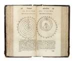 In-12° (mm 141x71). Pagine: XXIV, 231 [i.e. 331], [15] + 1 ritratto calcografico dell'autore con note biografiche sulla tavola. Frontespizio in cornice xilografica a doppio filetto, variante B dell'occhietto (senza stemma calcografico), numerose xilografie astronomiche e astrologiche nel testo. Assente l'ultima carta bianca (di 2, l'altra è presente), carte pallidamente brunite come d'uso (in modo più evidente in alcuni punti), due antiche firme di proprietà al frontespizio, per il resto buona copia in vitellino coevo, dorso a nervi con tassello in marocchino rosso e dorature (un po' sbiadito e sciupato e con qualche piccola mancanza, sbucciature agli angoli). Tagli spruzzati di rosso. (1) Seconda edizione (dopo la prima del 1682) di grande rarità sul mercato dell'opera di Cavalieri nella revisione del suo discepolo Urbano D'Aviso (1618-1685). "Cavalieri [...] afferma che "La Terra stà posta in Mezo del Mondo" (pagina 10) e fa rilevare che la Chiesa ha condannato chi, come Copernico, la pensa diversamente. Cavalieri tratta di astrologia dalla pagina 257 in fine sotto i soli profili matematico e astronomico. Insegna insomma, e con chiara conoscenza della materia, come fare un oroscopo, ma da tecnico e da matematico, senza fornire valutazioni, interpretazioni e soprattutto pronostici." Cantamessa, Biblioastrology.com, n. 1580.