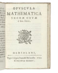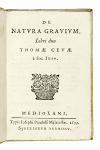 Ceva Tommaso, De natura gravium. Libri duo... [CON:] Opuscula mathematica... Mediolani: typis Iosephi Pandulfi Malatestae, 1699.