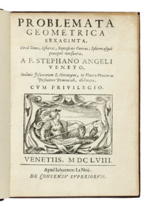 Degli Angeli Stefano, Problemata geometrica sexaginta. Circà conos, sphaeras... Venetiis: apud Iohannem La Noù, 1658.