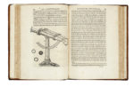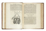 Due opere rilegate insieme in un volume in-4° (mm 230x168). Pagine: 303 [i.e. 305, pp. 263-264 ripetute nella numerazione], [23]. Assenti come spesso capita dopo l'indice le pp. 127, [1] contenenti il trattato Mechanique et Musique, al loro posto è presente un'altra opera del medesimo autore. Note manoscritte al frontespizio, numerosi diagrammi e figure in bella impressione nel testo. Copia pallidamente ma uniformemente brunita. [CON:] I.d., La geometrie. Paris: Charles Angot, 1664. Pagine: 119, [9]. Presenti le ultime due carte con il privilegio del Re. Numerosi diagrammi in bella impressione nel testo. Copia pallidamente ma uniformemente brunita. Piena pelle coeva con titoli e fregi in oro al dorso. (1) Due importanti opere che presentano il metodo cartesiano sia sul piano filosofico sia su quello matematico. OPERA I: terza edizione, la prima risale al 1637. PMM 129 (per la prima edizione). OPERA II: Rara prima edizione della Geometria di Cartesio, pubblicata per la prima volta come appendice della prima edizione del Discours de la methode del 1637. Tchemerzine, II, 796.