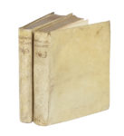 2 volumi in-4° (mm 193x147). Pagine [16], 520 con [1] tavola con ritratto calcografico; [18], 420, [4]. Al I volume occhietto con titolo, al recto antiporta con ritratto calcografico, e frontespizio stampato in rosso e nero. Timbro di biblioteca privata al frontespizio, antiporta leggermente staccato, pallide fioriture (più forti a qualche carta), fascicoli occasionalmente ingialliti, primi fascicoli del II volume con piccola gora sbiadita al margine esterno. Piena pergamena molle coeva con titoli manoscritti al dorso, tagli spruzzati di rosso. (2) Seconda edizione della celebre traduzione latina di Frans van Schooten dell'opera fondamentale di René Descartes. La Géométrie apparve originariamente in francese nel 1637 come appendice al Discours de la Méthode; Van Schooten la conobbe a Leida, dove Cartesio seguiva la stampa dell'opera, e ne pubblicò la prima versione latina nel 1649, arricchendola di un vasto commento. In questa seconda edizione, i commentari sono notevolmente ampliati e divennero un testo di riferimento imprescindibile per la generazione che sviluppò il calcolo infinitesimale. Isaac Newton stesso utilizzò questa edizione, come testimonia la sua copia annotata conservata a Cambridge. PMM 129; Poggendorff I, 557.