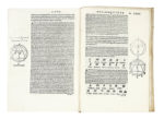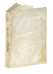 In-folio (mm 295x207). Carte: CCXXXIX [i.e. 241], [1]. Stemma del dedicatario Gabriele Tadino sul frontespizio, numerosi diagrammi xilografici ai margini. Primo fascicolo rimontato, rinforzo al margine interno e qualche piccolo restauro al frontespizio, strappetto al margine superiore della carta CXXIII senza perdita di testo, qualche occasionale macchietta pallida, ma nel complesso copia molto buona con carte pulite e croccanti nella sua pergamena flessibile coeva (qualche difetto). Timbro nobiliare di Gaspare Rossi Scotti in calce al frontespizio. (1) Prima edizione italiana di Euclide, e prima traduzione degli Elementi in una lingua moderna, a cura di Niccolò Tartaglia (1499 circa-1557), matematico italiano ricordato per la scoperta della tabella binomiale che porta il suo nome e per il decisivo contributo apportato alla formulazione risolutiva delle equazioni algebriche di terzo grado. Diede un importante contributo alla diffusione delle opere dei matematici antichi. Riccardi 2 col. 497: "Rarissimo. Le due traduzioni cui alludesi nel titolo sono quelle del Campano e del Zamberti. Questa del Tartaglia è la prima versione italiana dell'Euclide." Gaspare Rossi Scotti (Perugia 1800-1864), pittore, fu il padre di Lemmo Rossi Scotti, conte di Montepetriolo, uno dei più prolifici pittori ottocenteschi di battaglie.