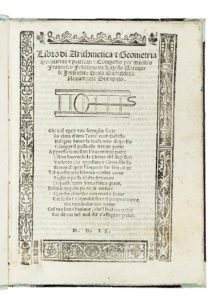 Feliciano Francesco, Libro di arithmetica & geometria speculatiua & praticale... 1560. (Al colophon:) Stampato nella inclita citta di Vinegia per Francesco de Leno, 1561.