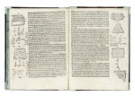 In-4° (mm 210x157). Carte: [80]. Frontespizio in cornice xilografica e con vignetta con scala e grimaldello. Margini con numerose operazioni matematiche a stampa e diagrammi xilografici di figure geometriche e botti, tini, archi, ecc. Pallido alone al margine inferiore interno delle prime carte, qualche carta occasionalmente brunita in modo pallido, per il resto buon esemplare in cartonato rigido ottocentesco con dorso e angoli rivestiti in carta verdina, piatti marroni, tagli spruzzati d'azzurro acceso (qualche abrasione). (1) Pregiata edizione conforme alla prima stampa realizzata nel 1526. Si tratta di un'opera di straordinaria rilevanza nella storia della matematica, probabilmente tra quelle che più incisero sull'insegnamento della disciplina nel corso del Cinquecento, tanto da essere ristampata ininterrottamente anche nel Seicento. Il volume affronta temi di aritmetica mercantile, algebra e geometria.