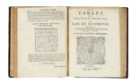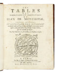 In-8° (mm 162x100). Pagine: [8], 438, [2]. Numerosi diagrammi geometrici nel testo. Margine superiore un po' corto, una piccola gora all'angolo inferiore esterno del primo quaderno, firma cassata al frontespizio e altre trascurabili tracce del tempo. Piena pelle coeva, dorso a nervi con tassello in marocchino rosso e scomparti dorati, tagli spruzzati (abrasioni e sbucciature). [SI ALLEGA:] Id., Les Tables des directions et profections de Iean de Mont-Royal... A Paris: en l'Isle du Palais, à l'image sainct Michel, 1626 (Al colophon:) Par Fleury Bourriquant, 1625. Un volume in-4° (mm 219x171). Pagine: [20], 120, 248. Pagine uniformemente brunite in modo pallido per la qualità della carta, qualche fioritura. Piena pelle coeva, dorso a nervi con titolo e scomparti dorati, tagli spruzzati di rosso (abrasioni e sbucciature). (2) Prima edizione in formato in-8° (la prima uscì in-4° nel 1612) della Mémoires mathématiques di Denis Henrion (seconda edizione ampliata del suo compendio di aritmetica militare), testo fondamentale per l'insegnamento della matematica pratica alla nobiltà francese all'inizio del XVII secolo, con numerose figure nel testo. Un secondo volume uscì nel 1627, con trattati successivi su triangoli sferici e logaritmi. Accanto ad essa si presenta Les tables des directions et profections de Jean de Mont-Royal, curato dallo stesso Henrion, in cui le Tabulae directionum dell'astronomo rinascimentale Regiomontano sono tradotte per la prima volta in francese e annotate con commenti, figure e nuove tabelle per uso astronomico e trigonometrico, frutto dell'intensa attività editoriale e matematica di Henrion nella prima metà del Seicento.
