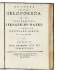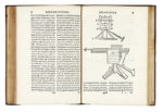 In-4° (mm 203x142). Pagine: 163 [1]. Ottima copia se non per un rinforzo al margine inferiore delle prime carte che tocca qualche lettera del testo, nota manoscritta sbiadita al frontespizio. Contropiatto anteriore con etichetta libreria antiquaria Mediolanum. Xilografie in bella impressione. [RILEGATO CON]: Id., Belopoeeca... Augustae Vindelicorum: typis Davidis Franci, 1616. Pagine: [4], 76 [i.e. 75], [1]. Inziali, testatine e finalini xilografici, numerose xilografie nel testo raffiguranti baliste e relativi meccanismi di ricarica. Testo in greco e latino su due colonne. Ottima copia in elegante marocchino posteriore riccamente decorato con filetti dorati ai piatti e titoli e fregi in oro al dorso, tagli dorati. (1) OPERA I: Seconda edizione, la prima edizione risale al 1575. L'opera descrive e spiega numerosi strumenti, congegni e macchine basati sulle proprietà dell'aria, dell'acqua e del vapore, il tutto con numerose illustrazioni xilografiche. OPERA II: Prima edizione. Splendida opera che tratta di armi d'assedio, l'opera nasce per essere latta da un amatore piuttosto che uno specialista. Brunet, III, col. 129 (Prima edizione, rara).