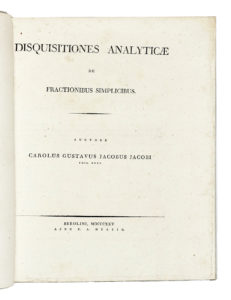 Jacobi Carl Gustav Jakob, Disquisitiones analyticae... Berolini: apud F. A. Herbig, 1825.