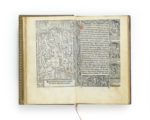 Paris, Philippe Pigouchet pour Simon Vostre, s.d. [vers 1502 (almanach pour 1502-1520)]. Grand in-8 (183 x 115 mm) sur peau de vélin de 92 ff., sign. a-l8 m4 ; maroquin havane janséniste, doublures et gardes de vélin blanc, tranches dorées (Chambolle-Duru). Précieux et très rare livre d’heures imprimé en caractères gothiques sur peau de vélin par Philippe Pigouchet pour le compte du libraire Simon Vostre.