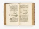 Lyon, Macé Bonhomme, 1554-1555. 2 tomes en un volume in-folio (338 x 220 mm) de [8] ff., 583 pp., [12] ff. et [6] ff., 242 pp., [5] ff. ; veau marbré, filets dorés, dos à nerfs orné, tranches dorées (Reliure du XVIIIe siècle).Édition originale d'un des principaux traités d'ichtyologie de la Renaissance.