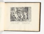 Paris, aux Galleries du Louvre chez la ditte Stella, 1657. Petit in-4 oblong (185 x 235 mm), maroquin bleu nuit à long grain, filet doré et frise à froid en encadrement, dos à nerfs plats orné de filets dorés et de fleurons à froid, coupes guillochées, dentelle intérieure, tranches dorées (Reliure anglaise vers 1820).Premier tirage de cette ravissante suite composée d'un titre gravé, une planche d'armoiries et de 50 belles planches accompagnées d'un sizain, soit en tout 52 planches gravées par Claudine Bouzonnet Stella d’après les dessins de son oncle Jacques Stella. Les 50 planches numérotées figurent des enfants nus occupés à différents jeux – l'escarpolette, la chasse au papillon, les bulles de savon, le dada, colin-maillard, la toupie, les quilles, le bilboquet, le ballon, etc.