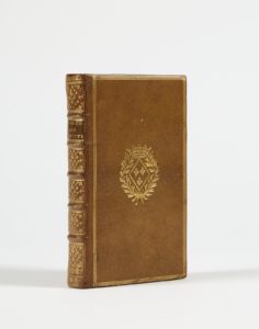 1763. 2 tomes en un volume in-12 (165 x 96 mm), maroquin citron, filets dorés autour des plats, armoiries au centre, dos orné, dentelle intérieure, tranches dorées (Reliure de l'époque).Nouvelle édition, revue et corrigée, parue un an après l'originale.