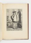 Paris, Basan, rue du Foin, et Saint-Aubin, s.d. [1766-1770]. Grand in-4 (346 x 253 mm), maroquin rouge, triple filet doré, dos orné de même, dentelle intérieure, tranches dorées (Riviere & Son).Suite d’un titre et de 6 planches dessinées par Augustin de Saint-Aubin (1736-1807) et gravées à l’eau-forte et au burin par Jean-Baptiste Tilliard (1740-1813). Les figures, numérotées de 1 à 6, représentent des petits Savoyards en quête d’une commission pour service : messager, décrotteur, scieur de bois…