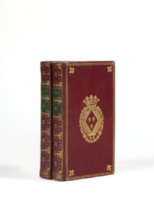 Paris, Delalain, 1786. 2 volumes in-12 (163 x 95 mm), maroquin rouge, filets dorés, fleur de lys aux angles, armoiries au centre, dos lisse orné, doublures et garde de moire bleue, tranches dorées (Reliure de l'époque).Édition originale.