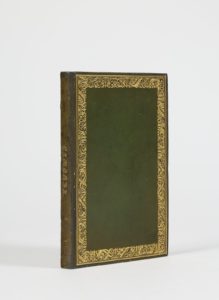 Londres, Rudolph Ackermann, 1837. In-8 (236 x 152 mm), maroquin olive, filets et frise végétale dorée, dos lisse avec le titre doré en long, tranches dorées (Reliure de l'éditeur).Édition originale de ce traité cynégétique et forestier illustré de jolies scènes de chasse en couleurs.