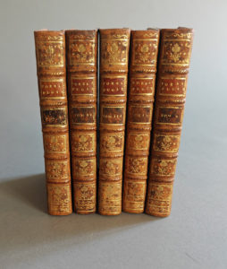 [BLAIN DE SAINMORE et LUNEAU DE BOISJERMAIN]. Élite des poésies fugitives. Londres, 1769. 5 volumes in-12, veau marbré, dos orné, tranches rouges (Reliure de l’époque). - Joli exemplaire, provenant de la bibliothèque Denis du Péage...