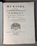 BORDEAUX. — Mémoire sur la possibilité d’établir à Bordeaux un nombre suffisant de fontaines. Bordeaux, Michel Racle, 1787. In-4, cartonnage d’attente de l’époque. - Édition originale de ce rapport sur les moyens d’approvisionnement...