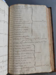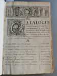 l’époque). - Manuscrit sur la noblesse de Bretagne, contenant notamment un Catalogue de tous ceux qui ont esté condamnez & ont renoncé à la noblesse lors de la Reformation, et un État général alphabétique de toutes les villes & paroisses de la province de Bretagne. - Titre placé dans un grand cartouche ornementé, avec armoiries de Bretagne, peint en camaïeu de gris. - Ex-libris manuscrit daté 1712 sur le titre. - Manquent les coiffes, coins accidentés.