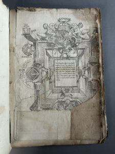 contemporaines en matière de dessin et de perspective. - Exemplaire très grand de marges dans sa première reliure, vélin taché et froissé. - Incomplet du titre et d’une partie de l’encadrement du frontispice (f. A2), et des feuillets A5, L2, L3, Q2 et Q3. - Les bords des feuillets un peu frottés.