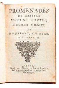 [COUTEL (Antoine)]. Promenades de Messire Antoine Coutel, Chevalier Seigneur de Monteaux, des Ruez, Fouynais, etc. Blois, Alexis Moette, s.d. In-12, veau caillouté, dos lisse orné à la grotesque, tranches rouges (Reliure du XVIIIe siècle). -...