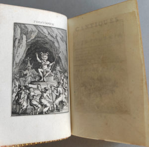 Agnès Sorel, David et Betzabée, La Chasteté de Joseph, La Pucelle d’Orléans, Judith et Holopherne, chaque partie ornée d’une figure galante et de feuillets de musique gravée et un frontispice général.