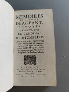 DEAGEANT. Mémoires envoyez à monsieur le Cardinal de Richelieu. Grenoble, Philippe Charvys, 1668. In-12, veau ocellé, dos orné à la grotesque, pièces rouges, tranches dorées (Reliure de l’époque). - Édition originale. L’auteur (†...