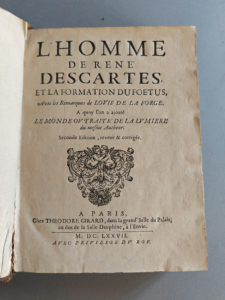 [DESCARTES (René)]. L’Homme, et la formation du fœtus. Avec les Remarques de Louis de La Forge. Paris, Théodore Girard, 1677. In-4, veau granité, dos orné, pièce de titre rouge (Reliure de l’époque). - Seconde édition, ornée de...