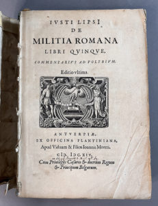 JUSTE LIPSE. De militiaromanalibri quinque. Anvers, Plantin, Moretus, 1594. — Poliorceticonsive de machinis, tormentis, telis. Anvers, Plantin, Moretus, 1605. Ensemble 2 parties en un volume in-4, vélin de l’époque. - Ouvrage érudit sur le...