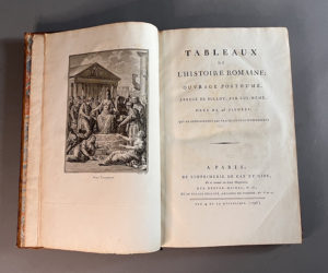 [MILLOT (l’abbé)]. Tableaux de l’histoire romaine. Paris, De l’Imprimerie de Gay et Gide, L’An 4 de la République (1796). In-folio, veau marbré, dos orné, tranches rouges (Reliure de l’époque). - Un frontispice et 47 jolies planches,...