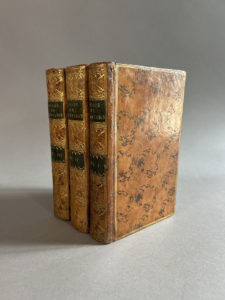 MONTAIGNE. Essais. Paris, Jean Servière, Jean-François Bastien, 1793. 3 volumes in-8, veau marbré, triple filet doré, dos lisse orné, pièces de titre et de tomaison vertes, roulette intérieure, tranches dorées (Reliure de l’époque). -...