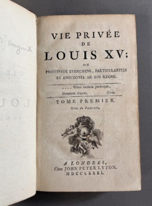 [MOUFFLE D’ANGERVILLE]. Vie privée de Louis XV ; ou Principaux événemens, particularités et anecdotes de son règne. Londres, John Peter Lyton, 1781. 4 volumes in-12, veau marbré, dos orné, tranches rouges (Reliure de l’époque). -...