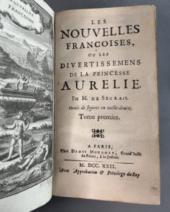 figures sur cuivre. - Parmi les nouvelles de Segrais, citons Honorine ou la coquette punie, Floridon ou l’amour imprudent, et Aronde ou les amans deguisez. - Coiffes supérieures restaurées.