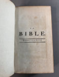 VOLTAIRE. La Bible enfin expliquée par plusieurs aumôniers. Londres, 1776. In-8 de 550 pages, veau brun, dos orné, tranches rouges (Reliure de l’époque). Édition à la date de l’originale. On a ajouté une carte de la Terre Sainte et 2...
