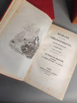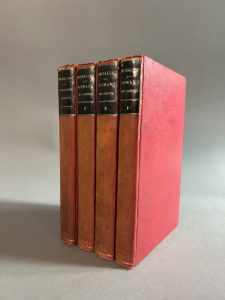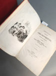 rogné (Pierson). 4 frontispices gravés sur bois par Porret d’après Tony Johannot. Exemplaire provenant de la bibliothèque des Goncourt, sans ex-libris mais portant à la fin du premier volume cette indication au crayon qui doit être celle de leur relieur attitré Pierson : de Goncourt rouge, pièces noires. Il figure dans le catalogue de la vente de 1897 sous le n°60. Les couvertures ont été arrachées. Piqûres, marges du frontispice du 4e volume refaites. Dos passé.