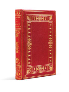 GAUTIER (Théophile). Le Roman de la Momie. Paris, Carteret et Cie, 1901. In-8, maroquin rouge, double filet et encadrement orné de fleurs de lotus, dos orné de même, bordure intérieure, tranches dorées sur témoins, couverture et dos, étui...