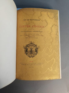 MAUPASSANT (Guy de). Contes choisis. Paris, Académie des beaux livres, 1891-1892. In-8, bradel demi-maroquin bleu avec coins, filet, non rogné, dos orné d’un décor de branches de roses mosaïquées, couvertures (Carayon). Recueil de dix contes,...