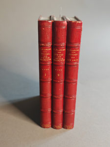 PLANCHE (Gustave). Études sur l’école française (1831-1852). Peinture et sculpture. Paris, Michel Lévy frères, 1855. 3 volumes in-12, demi-maroquin rouge avec coins, dos orné de doubles filets à froid, supra-libris doré en queue, tête...