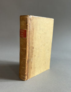 Didot l’aîné, 1814. In-8, demi-basane fauve, dos lisse ornéde filets et fers dorés, chiffre doréen queue, pièce de titre rouge, tranches jaunes, étui moderne (Reliure de l’époque). Édition originale du premier livre de Stendhal, publiée sous le pseudonyme de Louis-Alexandre-César Bombet. Reliure de l’époque au chiffre DF, non identifié. Quelques rousseurs claires, taches sur le bord des charnières sur les cartons des plats et le long du dos. Minime restauration à la coiffe supérieure et aux mors.