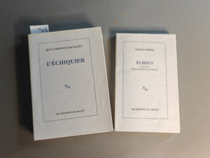 TOUSSAINT (Jean-Philippe). L’Échiquier. Paris, Éditions de Minuit, 2023. In-8, broché, non coupé. Édition originale. Un des 75 exemplaires sur vergé Schleipen. Envoi signé de l’auteur. On joint : ZWEIG (Stefan). Échecs. Traduction de...
