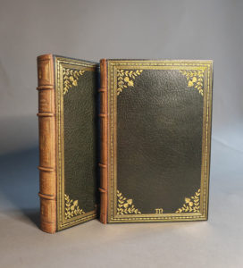 VIGNY (Alfred de). Servitude et grandeur militaires. Paris, Armand Magnier, 1898. 2 volumes grand in-8, maroquin vert, filets et roulettes dorés, feuillages aux angles, chiffre JM doré en bas du premier plat, dos orné, doublure de maroquin rouge,...
