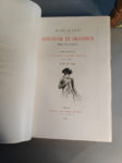 encadrement intérieur orné de filets dorés, gardes de moire vert foncé, tranches dorées sur témoins, couverture et dos, étui (Durvand). Compositions de Albert Dawant et eaux-fortes de Louis Muller. Tirage à 300 exemplaires, celui-ci un des 50 sur papier vélin avec 2 états des planches. De la bibliothèque Jules Marsan. Dos insolé.
