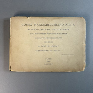 MEXIQUE. — CODEX MAGLIABECCHIANO XIII. 3. Manuscrit mexicain post-colombien de la Bibliothèque nationale de Florence, reproduit en photochromographie aux frais du duc de Loubat. Rome, Danesi, 1904. In-8 oblong, cartonnage papier crème, titre...