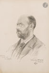Dessin par Arthur Jule GOODMAN, portrait de Georges Barbotte, crayon noir, signé et daté 1890.