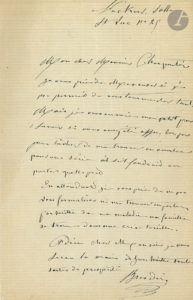 mon petit pour savoir si vous avez été assez bon pour tâcher de me trouver un amateur pour une série et s’il faudrait emporter quelle part. En attendant je vous prie de ne pas vous formaliser ni me trouver importun par suitte de ma maladie ma famille se trouve dans une crise terrible »…