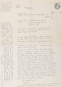 Jean-Jacques SEMPÉ (1932-2022). L.A.S., 18 juillet 1965, à Françoise Giroud et Christiane Collange au journal L’Express ; et 3 dessins avec légendes autographes, dont 2 signés ; 1 page grand in-fol. (47 x 34 cm) sur papier fort, et 3...